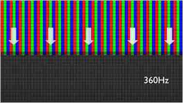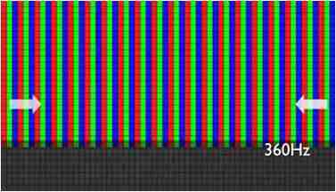 传统液晶驱动是从左到右单向进行,,,,在画面更新速度愈来越愈快的情况下,,,位于驱动线路末端的右下角区域,,,画素的闸极来不及在短时间内获得足够电压,,无法显示出正确的颜色资讯。。。。